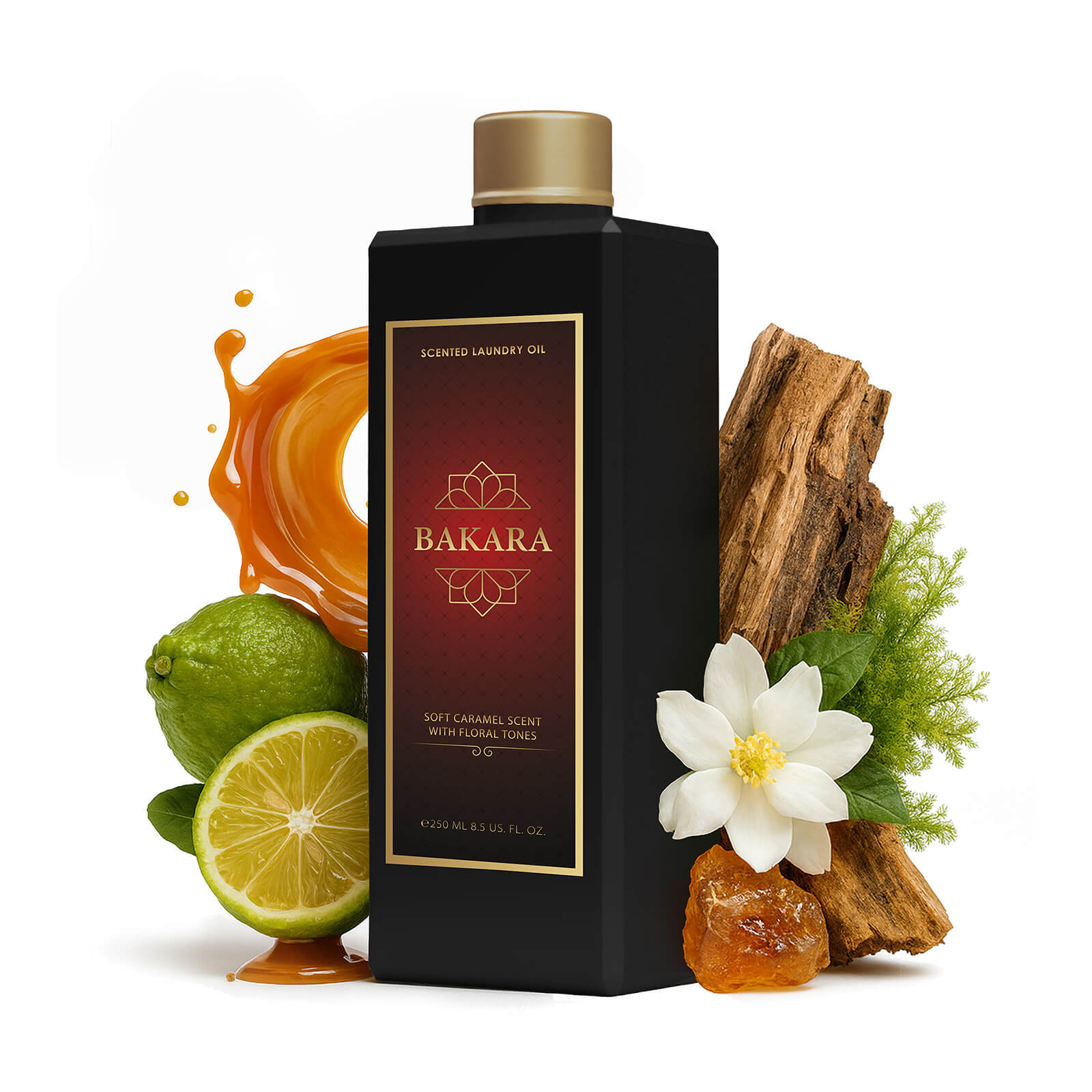 Bielizeň vypratá s parfumom BAKARA vonia ambrovo a elegantne. Vo vonnej kompozícii tohto oleja na pranie sa prelínajú iskrivé citrusové tóny, sladký karamel a príťažlivá ambra. Oblečenie či posteľná bielizeň tak po vypratí zostanú svieže, no s jemným nádychom luxusu a zmyselnosti. BAKARA akékoľvek oblečenie premení na drahý kúsok.