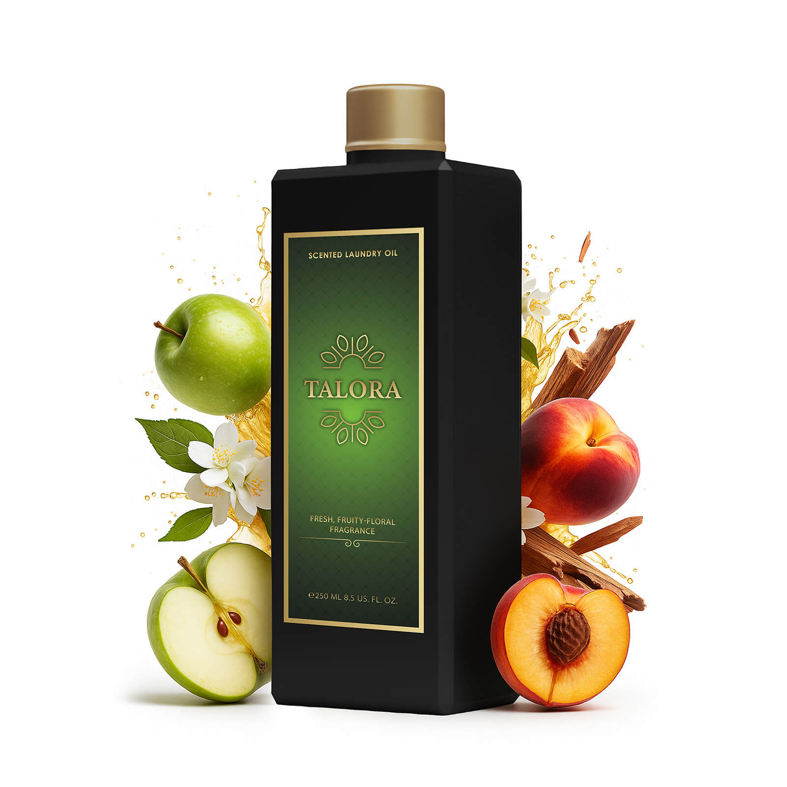 Po vypraní zanecháva parfum do prania TALORA na bielizni jemnú ovocnú vôňu. Je to vôňa čistoty, čerstvosti a prirodzenosti. TALORA je vďaka tomu veľmi univerzálny olej do prania a vhodný na každodenné pranie. Na rozdiel od obyčajnej aviváže zachová vaše oblečenie svieže a voňavé až niekoľko dní po vypratí. Zapáči sa vám, ak preferujete ľahké a svieže vône, ktorá vás dobijú energiou a pozitivitou.