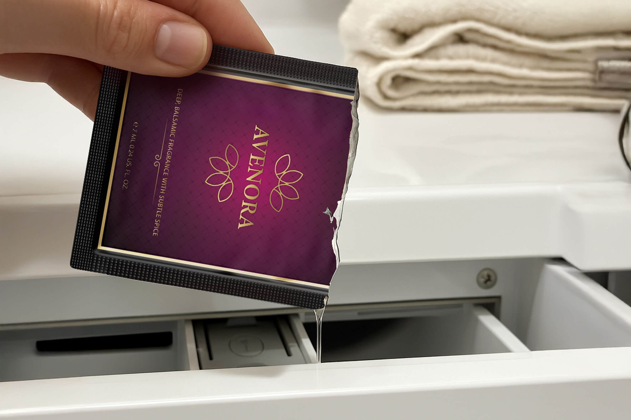 Chcete sa vyhnúť tradičným avivážam? Vyskúšajte vzorku pracieho parfumu AVENORA a overte si jeho kvalitu. Na bielizni zanecháva harmonickú zamatovú vôňu. Hodí sa na pranie dámskeho, pánskeho aj detského oblečenia. 7 ml vzorka je určená na jedno pranie.